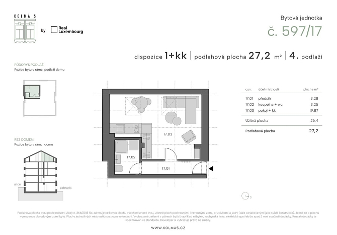 Prodej bytu 1+kk 27 m², Kolmá, Praha-Vysočany